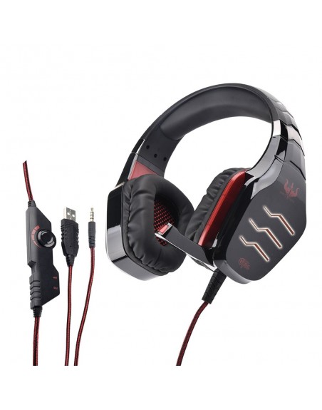Os materiais macios tornam-no confortável e utilizável por longas horas. Possui um único cabo com 2 conectores, USB e 4PIN JACK de 3,5 mm. O conector USB é usado exclusivamente para a fonte de alimentação dos LEDs, enquanto o 4PIN JACK de 3,5 mm é usado na transmissão da entrada e saída do sinal de áudio. Excelente desempenho acústico graças aos altifalantes grandes que reproduzem fielmente qualquer tipo de áudio.