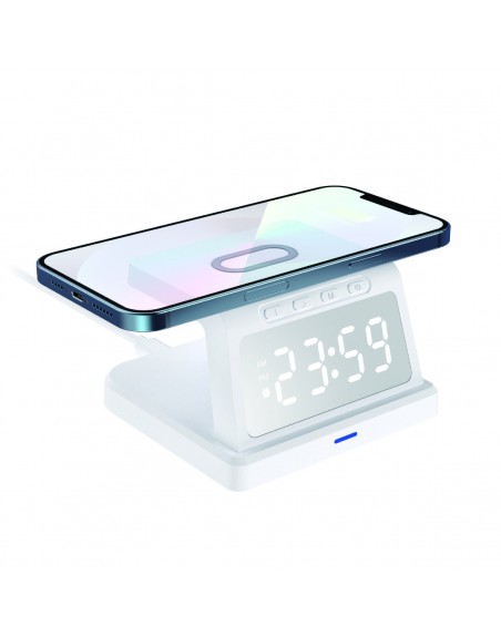 Graças ao seu design fino e moderno, este despertador digital inclui um suporte de carregamento sem fio rápido! Discreto, perfeito para utilizar numa secretária ou numa mesa de cabeceira, é uma forma rápida e prática de carregar o seu telefone, todos os dias.